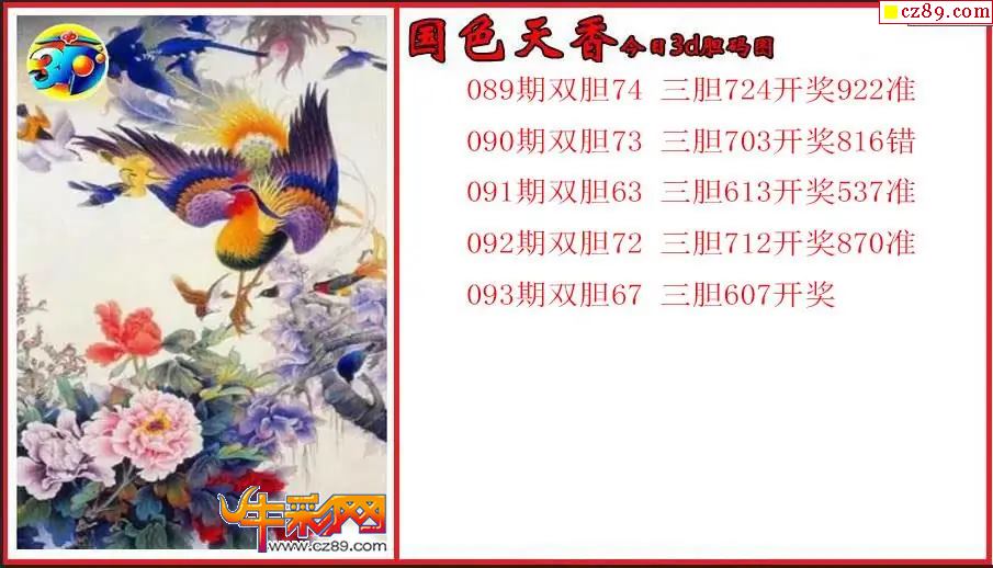 > 26年093期3d 国色天香今日胆码图