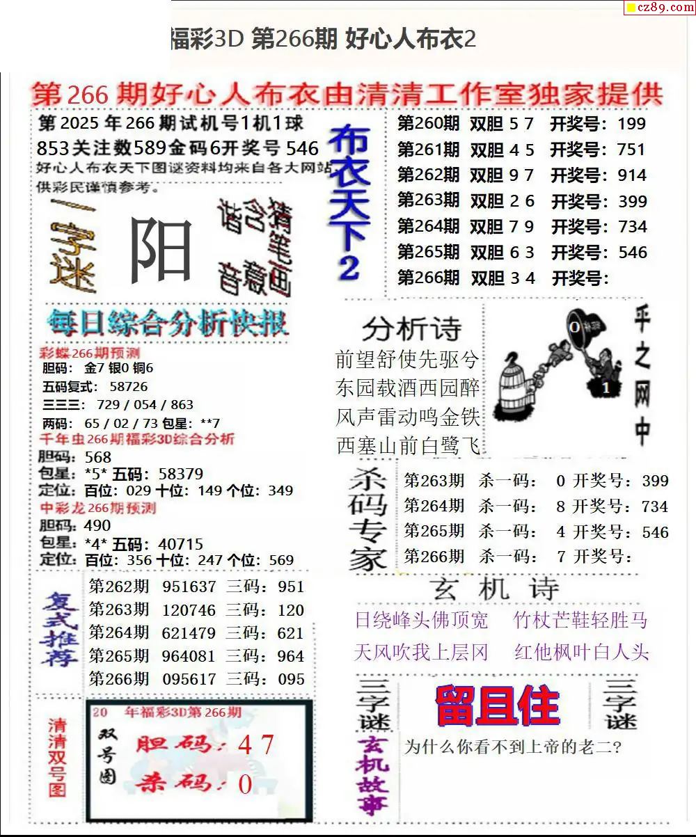 今日福彩3d字谜-今晚3d开机号试机号-3d最精准独胆王-3d专家预测-今晚精准预测三注