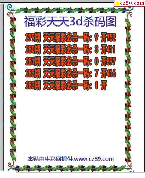 > 福彩天天杀码2025283期3d图谜(原创)