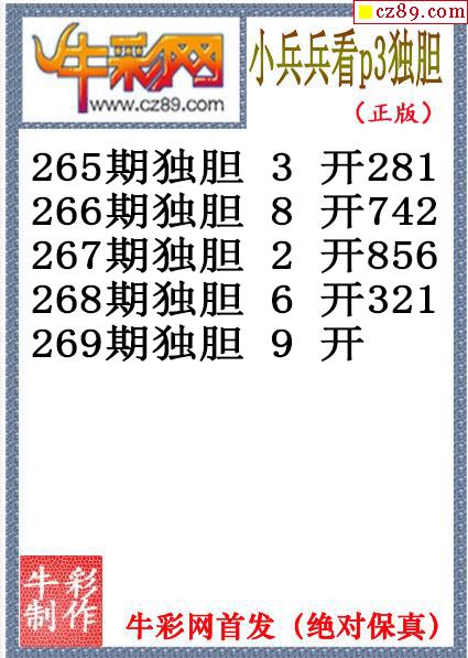 小兵兵独胆269期体彩P3图谜(原创)