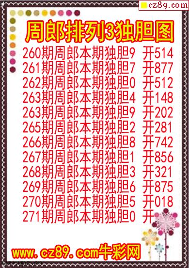 > 25年271期周郎排列3独胆图