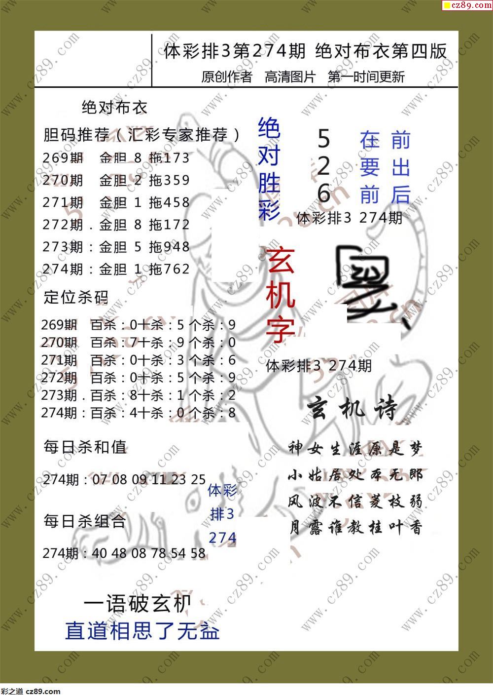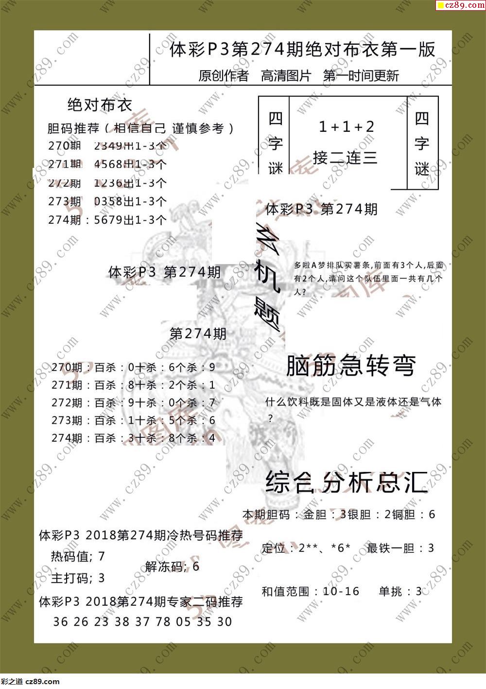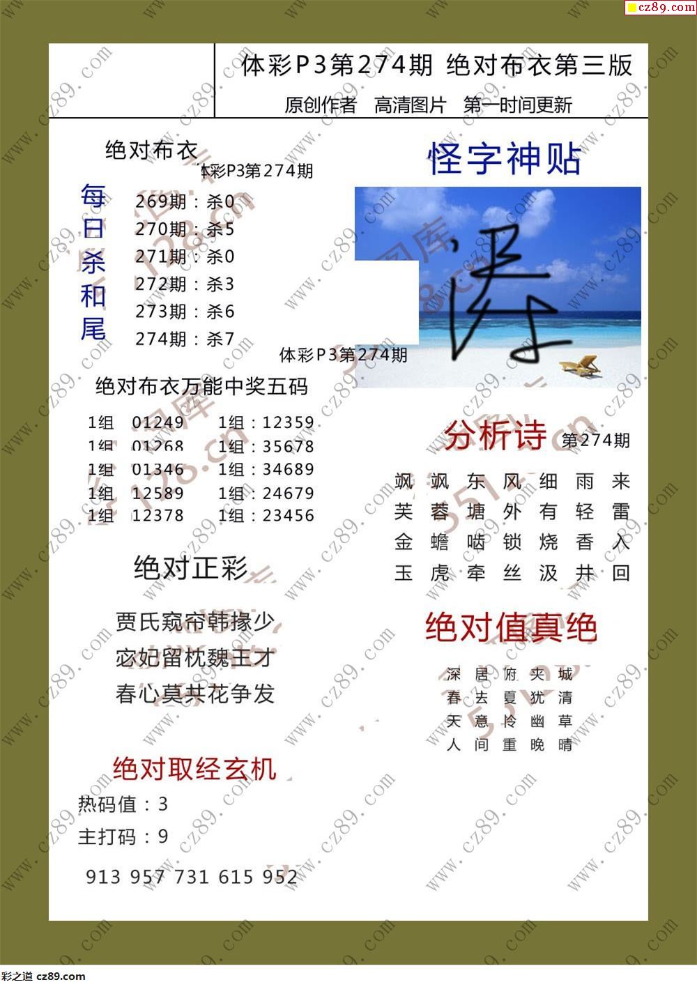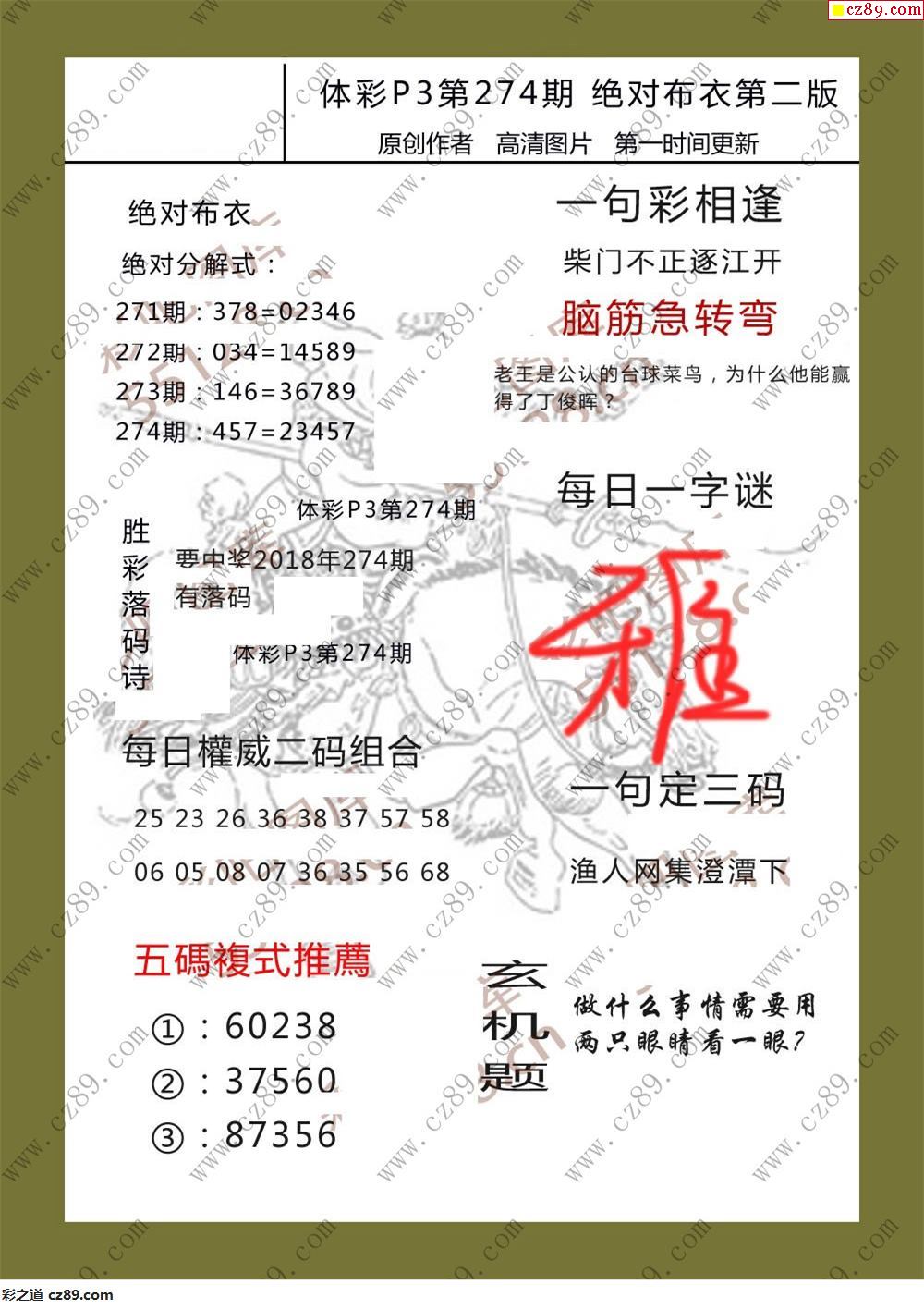 绝对布衣274期体彩p3图谜