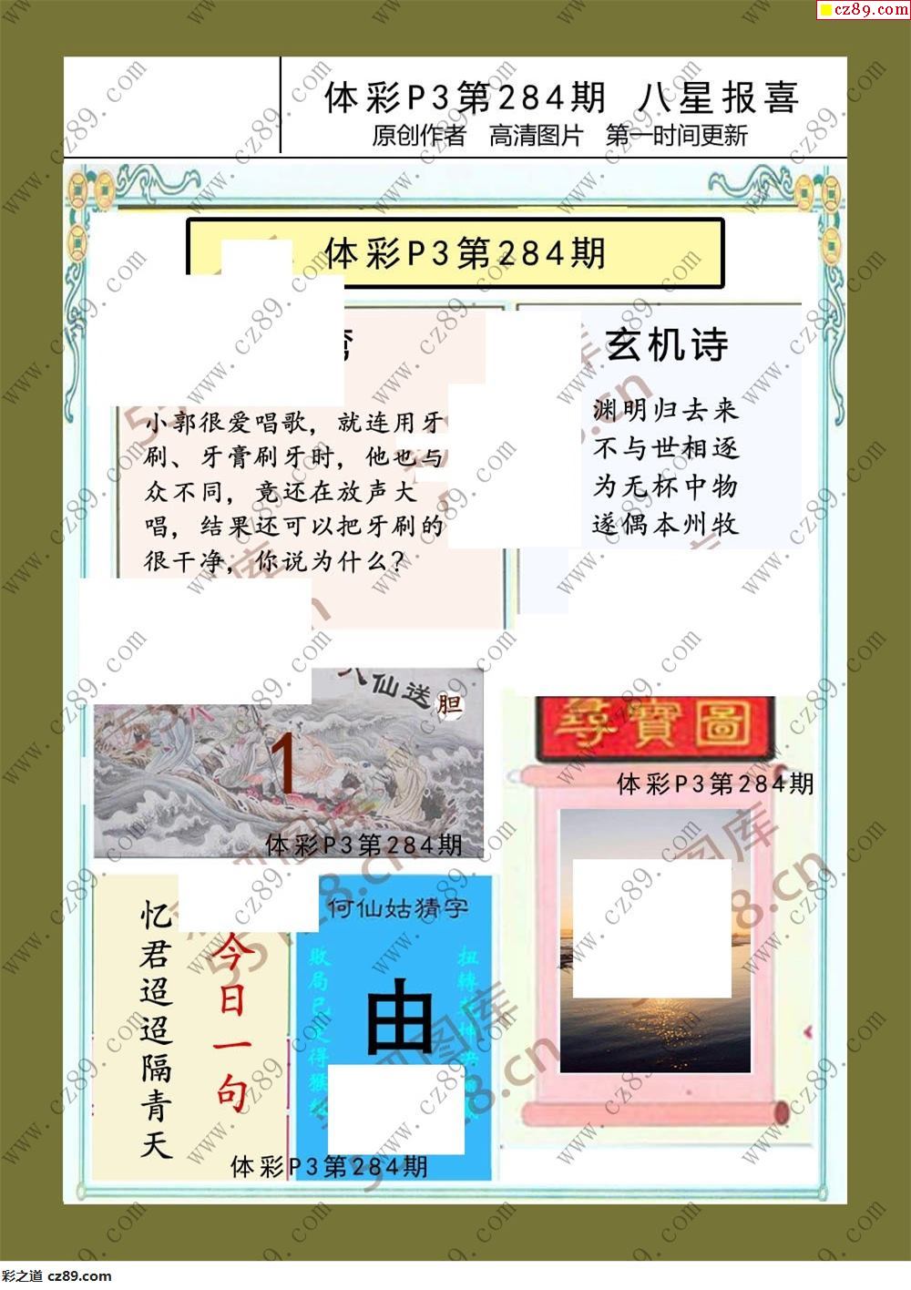 > 八星报喜284期体彩p3图谜