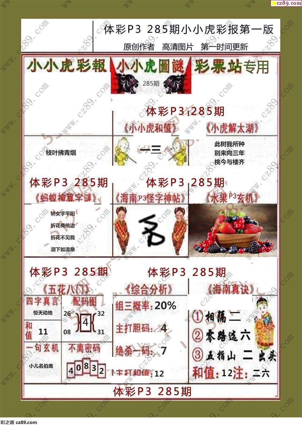 小小虎彩报285期体彩p3图谜